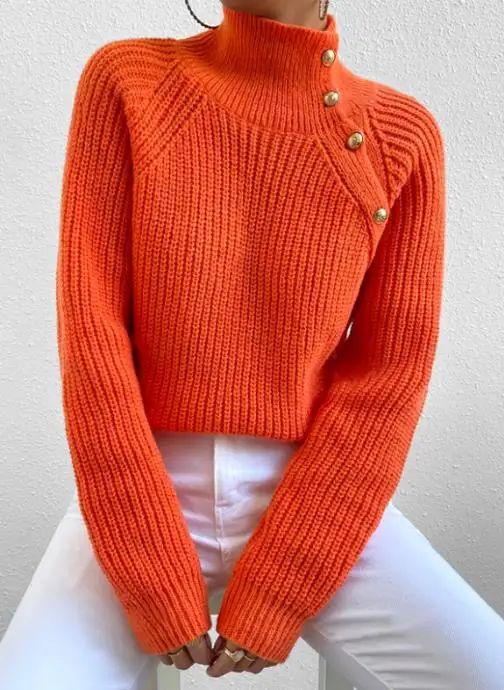 The Aubrey Knit Sweater is a timeless autumn–winter essential, designed for women who appreciate clean lines, soft textures, and effortless everyday elegance. Featuring a semi high-neck for added warmth, a smooth solid-color finish, and subtle button detailing, this sweater brings a refined touch to any outfit.